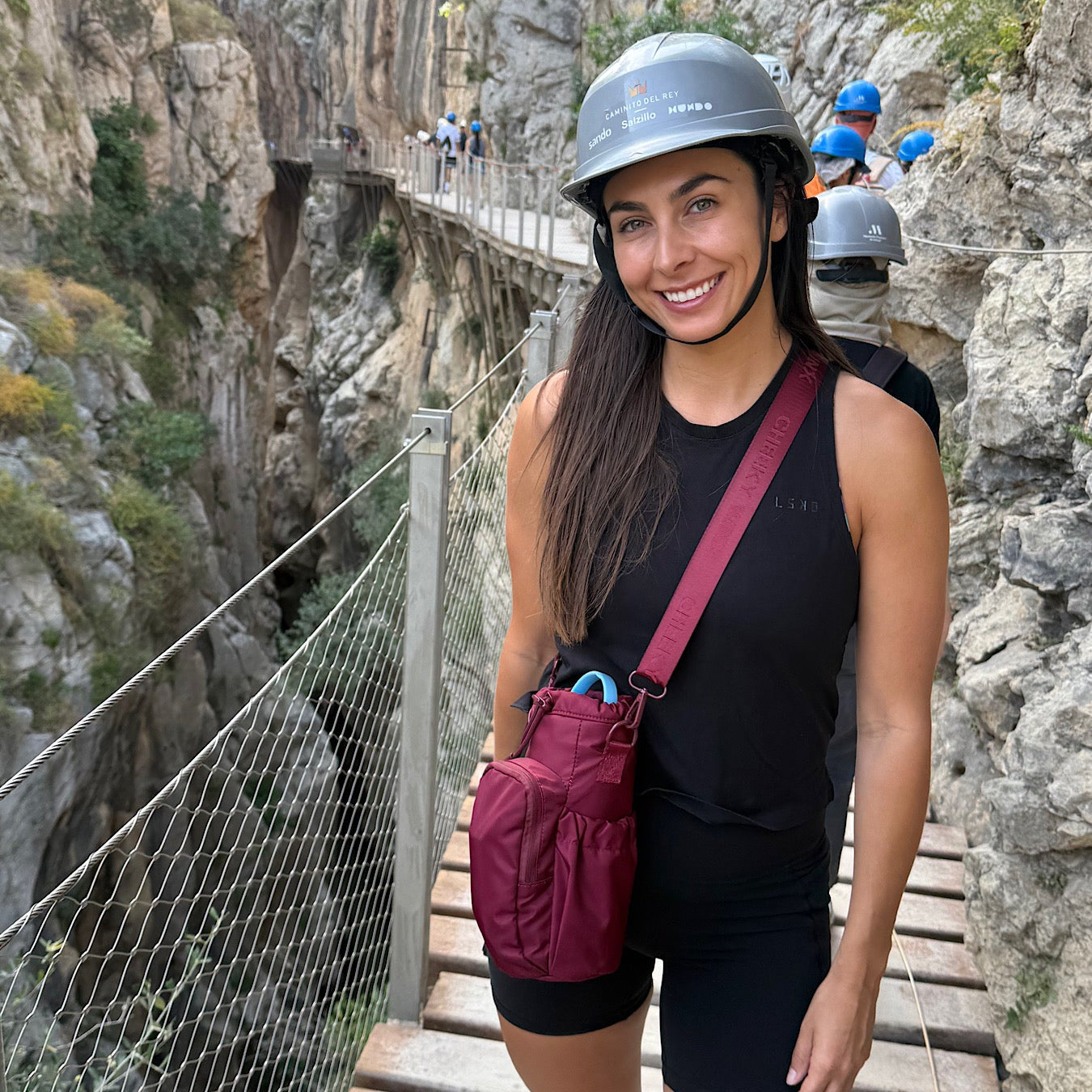 Designed to fit your favourite 1L water bottle, this compact cross-body bag features an insulated bottle slot to reduce condensation, a secure anti-theft front zip pocket with an internal pocket for valuables, and two extra back pockets for everything else like keys, sunscreen, snacks, hand sanitiser or AirPods.